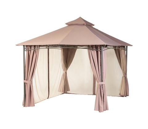 Мы предлагаем вам приобрести комплект, предназначенный для садового павильона Amora; выполнен в бежево-коричневым цвете. В крыше имеется специальное отверстие для вентиляции шатра; кроме крыши в комплект входит антимоскитная сетка и плотные шторы. Благодаря данному садовому павильону вы будете защищены от насекомых, прямых солнечных лучей, а также осадков. Все текстильные элементы можно снять для того, чтобы их постирать.
