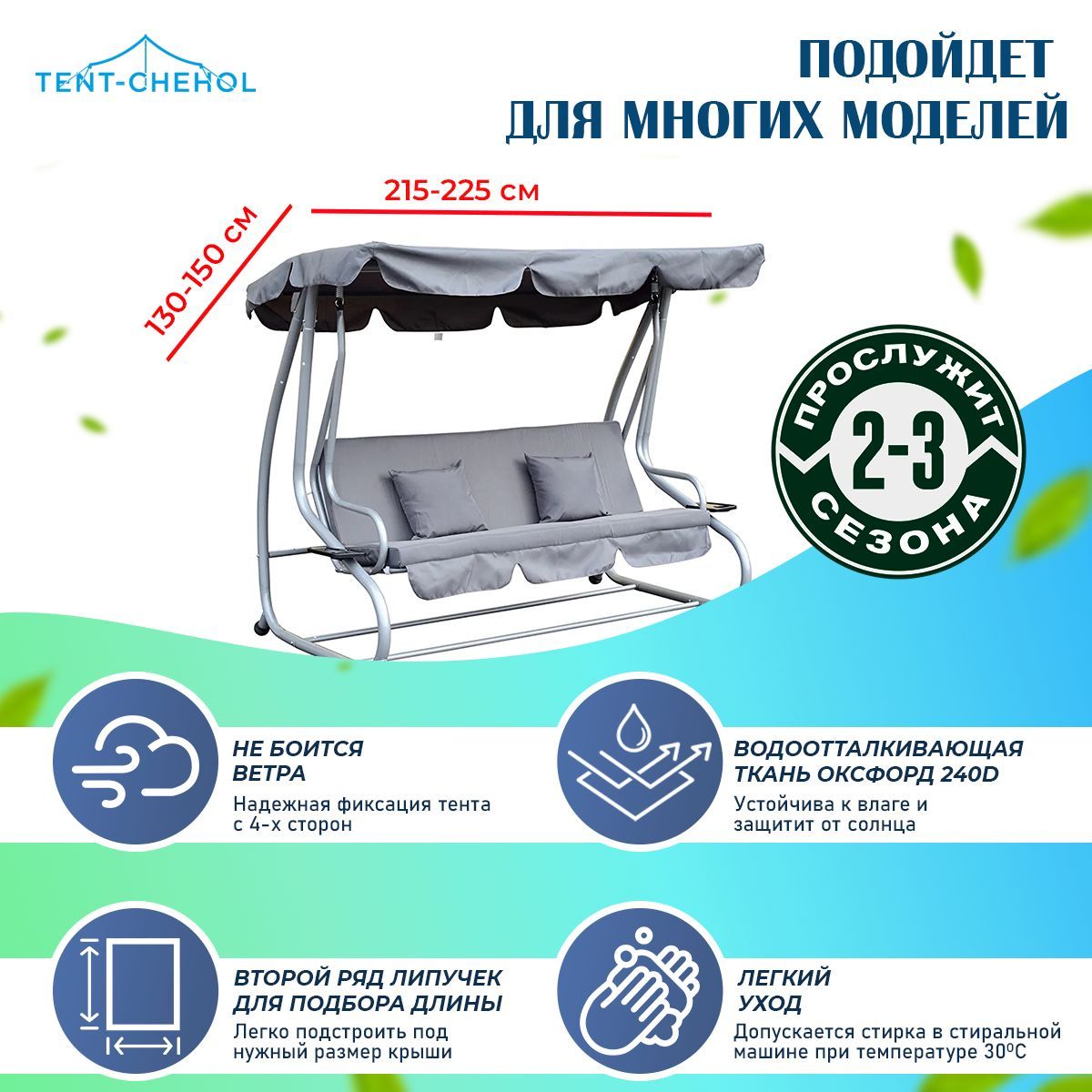 Универсальный тент для садовых качелей, серый, длина 210-225, ширина 130-150 для